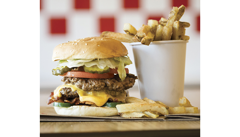 La marca de fast food es un proyecto de los hermanos Janie y Jerry Murrrell. En un principio, el nombre Five Guys hacía referencia a Jerry y sus cuatro hijos, hasta que llegó Tyler, el menor. Desde entonces la marca recibe su nombre de los cinco hermanos: Matt y Jim supervisan las operaciones visitando tiendas alrededor de EEUU, Chad se encarga de la formación, Ben selecciona a los franquiciados, y Tyler controla la producción del pan.